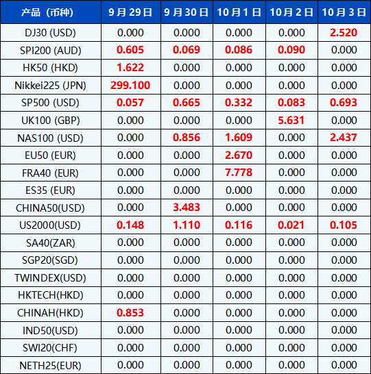 请注意, 以上数据仅供参考,所有数据均以MT4/MT5软件实际执行情况为准。