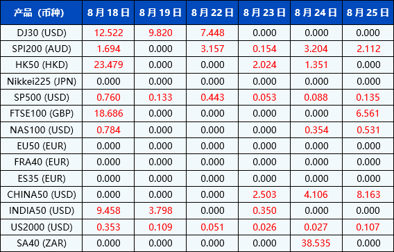 请注意, 以上数据仅供参考,所有数据均以MT4/MT5软件实际执行情况为准。