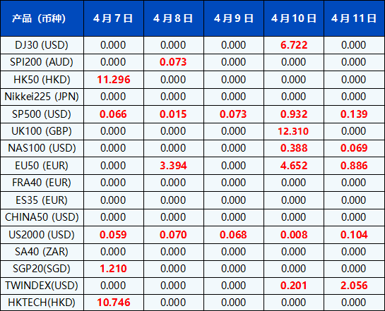 Please be advised that the dividends of the following index CFDs will be adjusted by upcoming ex-dividend dates. The comment for trading index CFDs will be in the following format “Div&<Product Name>&<Net Volume>” which show in the balance after the close of the day before the dividend payment date.