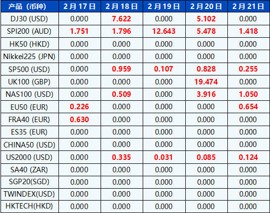 请注意, 以上数据仅供参考,所有数据均以MT4/MT5软件实际执行情况为准。