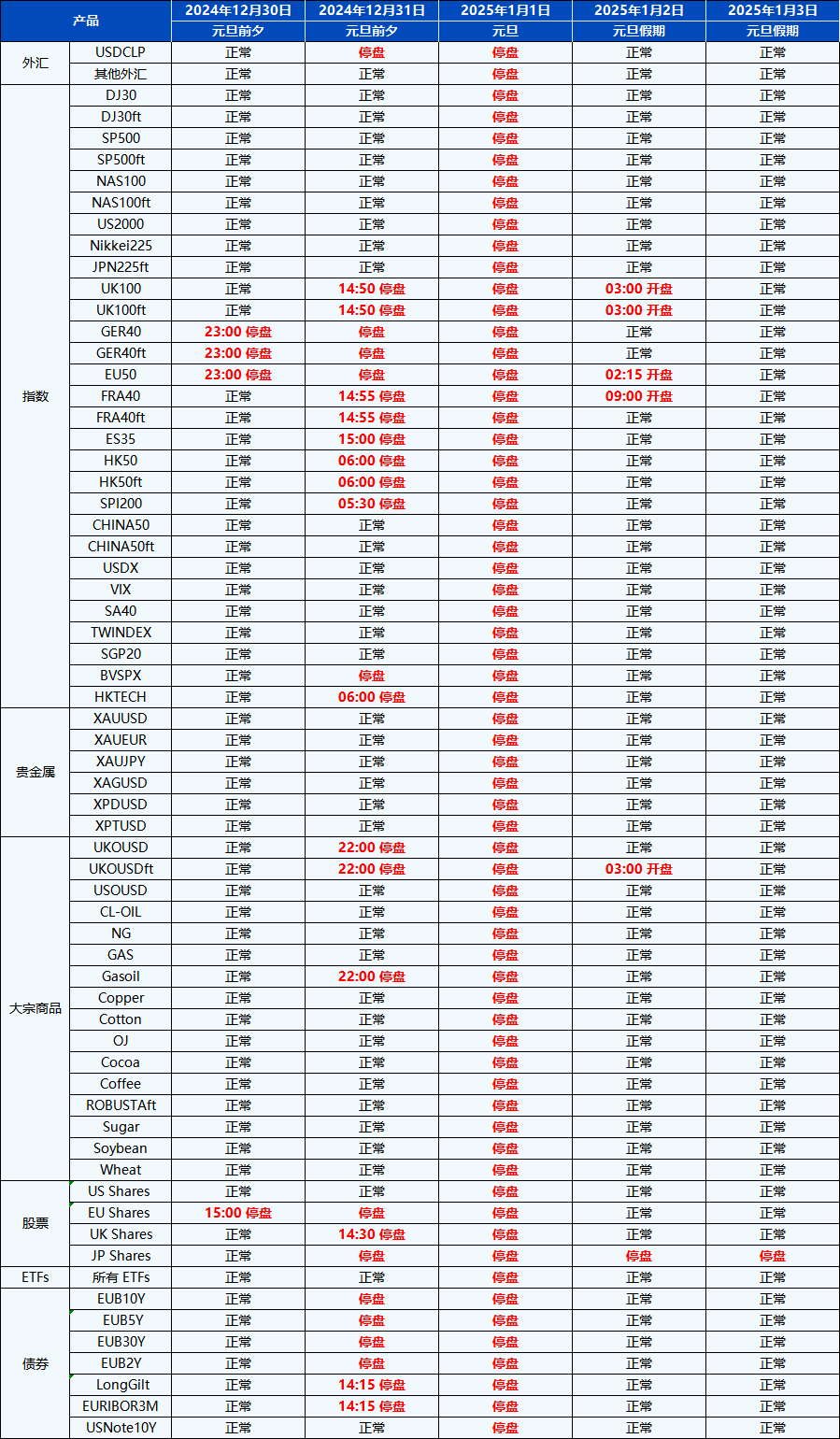 您好,受即将到来的元旦假期影响,PU Prime的交易时间将有所调整。
