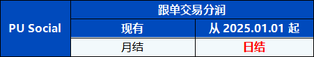 您好,为提供更透明和公平的跟单交易环境,PU Prime 将于 系统时间从2025年1月1日00:00(GMT+2)起优化PU Social 的跟单交易分润功能。