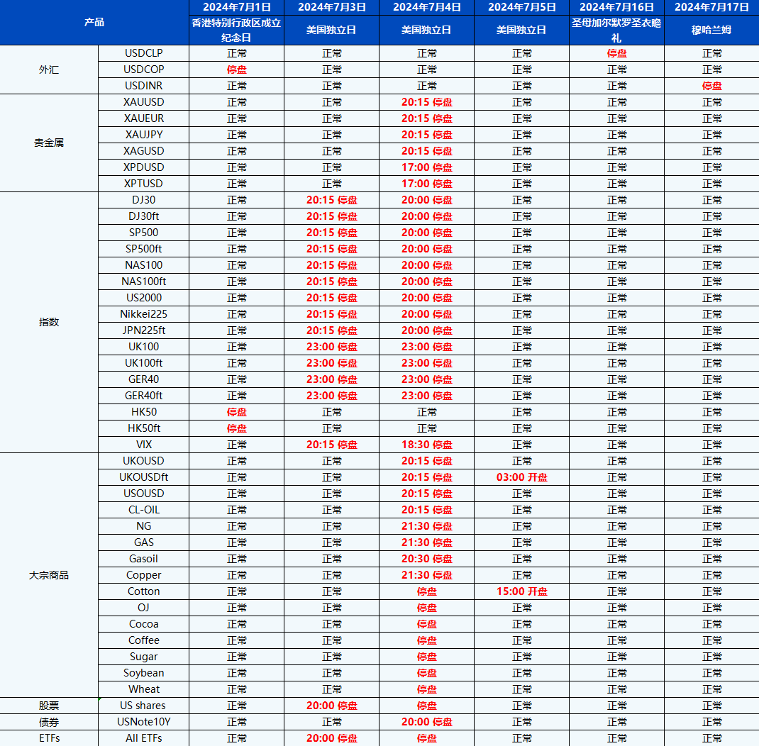 您好,受即将到来的 7月份假期影响,PU Prime的交易时间将有所调整。