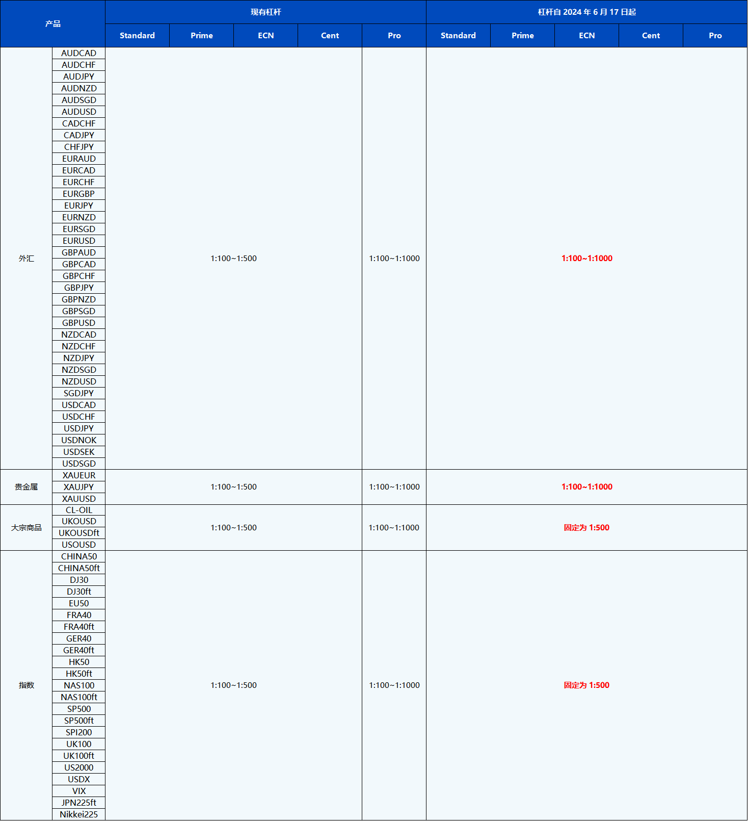 您好,PU Prime 将从2024年6月17日起对所有MT4/MT5 Pro账户实施以下调整措施,以增强竞争力并改善交易环境: