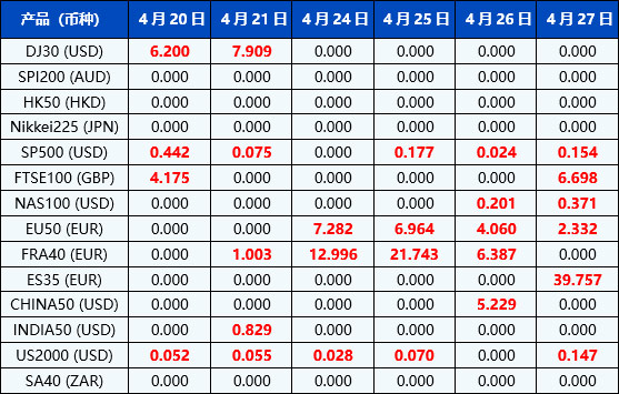请注意, 以上数据仅供参考,所有数据均以MT4/MT5软件实际执行情况为准。