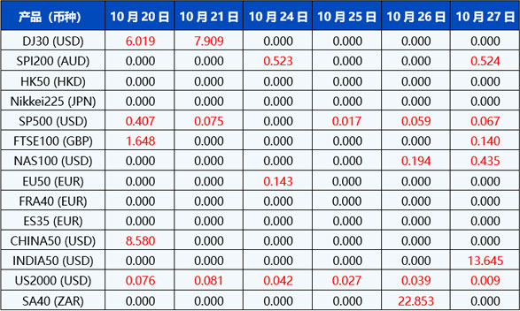 请注意, 以上数据仅供参考,所有数据均以MT4/MT5软件为准