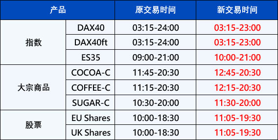 您好! 由于欧洲及英国冬令时间即将到来,PU Prime 部份产品交易时间由2022年10月31日起将有所调整。