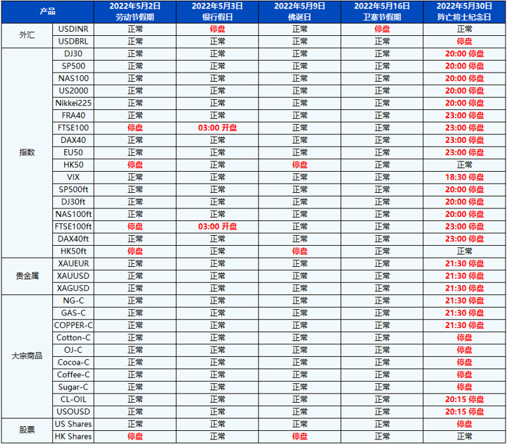 您好,受即将到来的五月份假期影响,PU Prime的交易时间将有所调整。