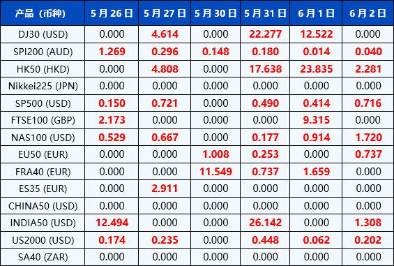 您好,PU Prime作为以技术为核心,以服务为导向的全球多资产在线交易服务提供商,考虑到若您交易指数现货差价合约(CFD)产品中某个成份股产生股利分红(派息)时,您在PU Prime所持有的指数产品将于派息日前一天收盘后进行股息调整,并以资金扣补(Balance)的形式呈现在账户历史中,注释为“Div & 指数名称 & 手数”。