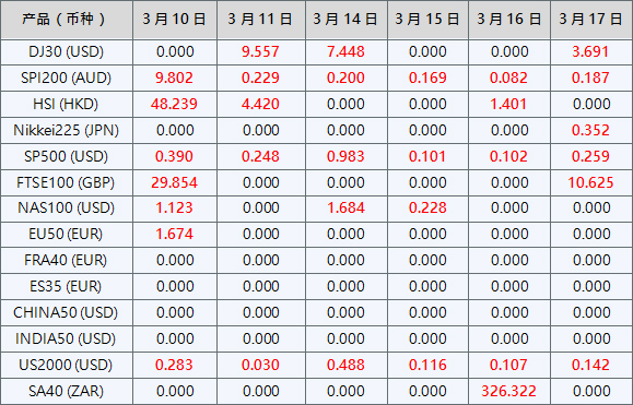请注意, 以上数据仅供参考,所有数据均以MT4/MT5软件为准。
