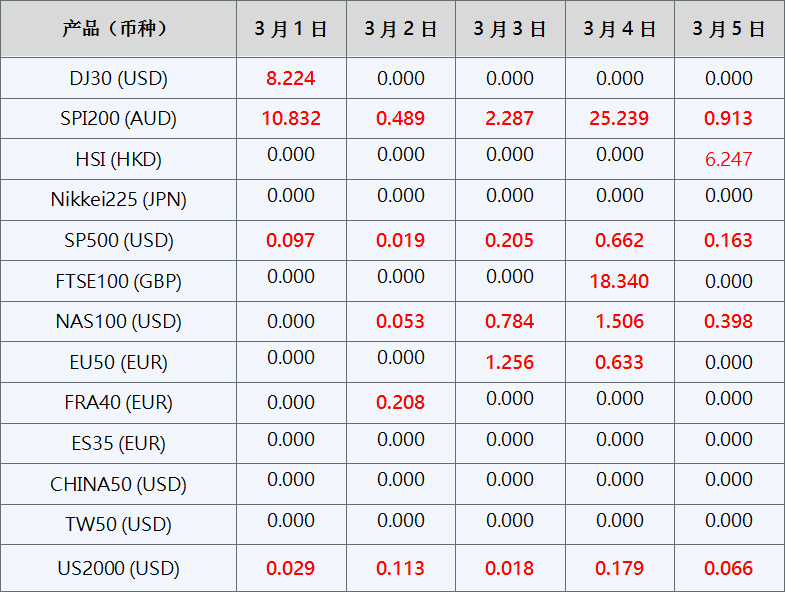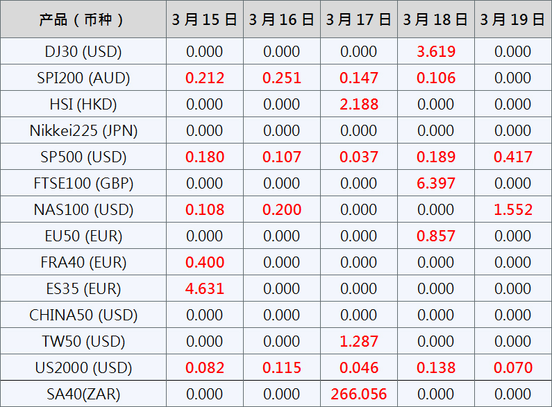 请注意, 以上数据仅供参考,所有数据均以MT4/MT5软件为准