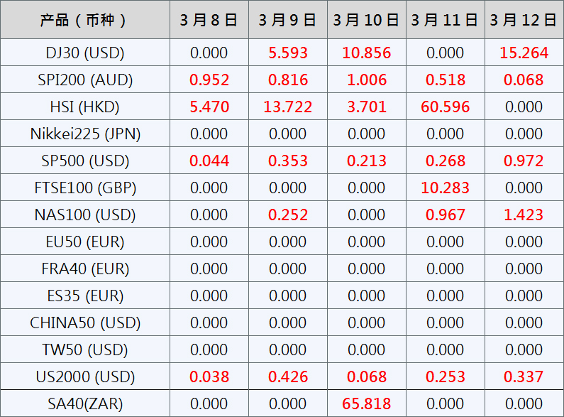 请注意, 以上数据仅供参考,所有数据均以MT4软件为准