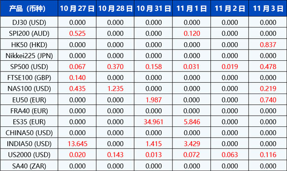 请注意, 以上数据仅供参考,所有数据均以MT4/MT5软件实际执行情况为准。