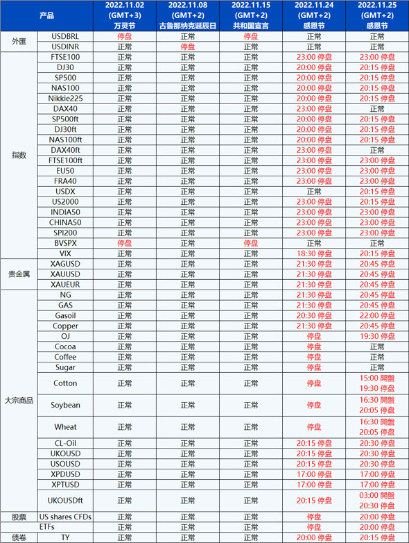 *万灵节的所有时间均为GMT+3(MT4/MT5服务器时间)