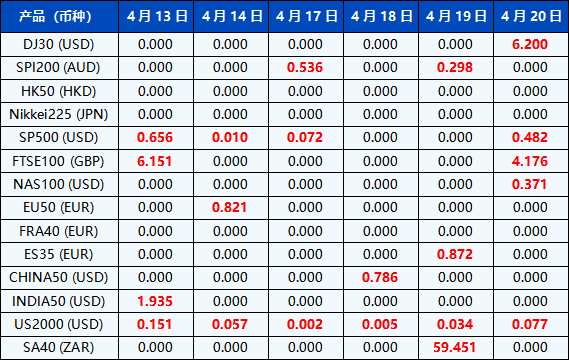 请注意, 以上数据仅供参考,所有数据均以MT4/MT5软件实际执行情况为准。