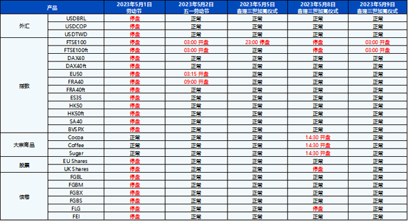 您好,受即将到来的5月份假期影响,PU Prime的交易时间将有所调整。