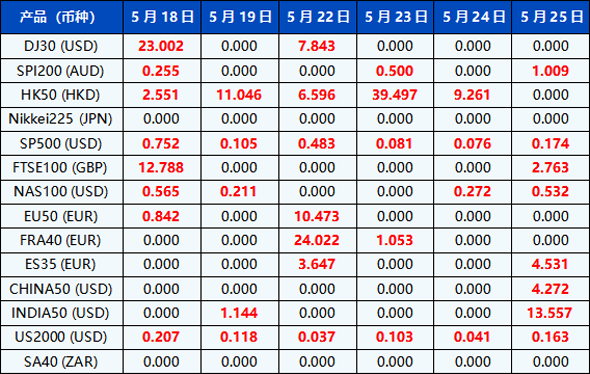 请注意, 以上数据仅供参考,所有数据均以MT4/MT5软件实际执行情况为准。