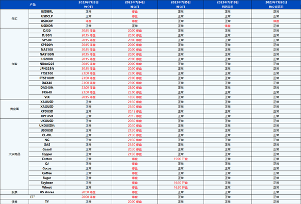 您好,受即将到来的7月份假期影响,PU Prime的交易时间将有所调整。
