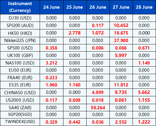 Please be advised that the dividends of the following index CFDs will be adjusted by upcoming ex-dividend dates. The comment for trading index CFDs will be in the following format “Div&<Product Name>&<Net Volume>” which show in the balance after the close of the day before the dividend payment date.