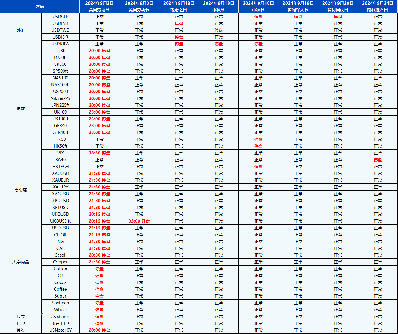 您好,受即将到来的 9月份假期影响,PU Prime的交易时间将有所调整。