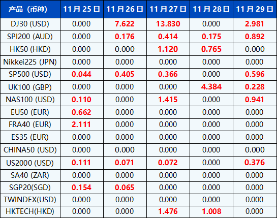 请注意, 以上数据仅供参考,所有数据均以MT4/MT5软件实际执行情况为准。