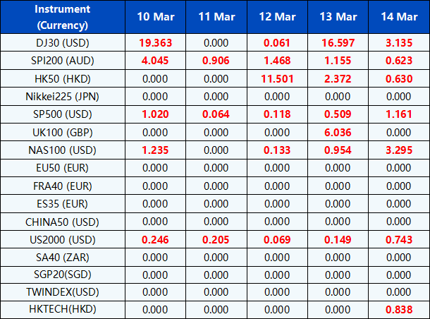 Please note the above data are subject to changes. Please refer to MT4/MT5 for details.