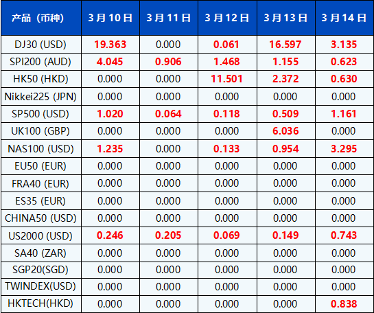 请注意, 以上数据仅供参考,所有数据均以MT4/MT5软件实际执行情况为准。