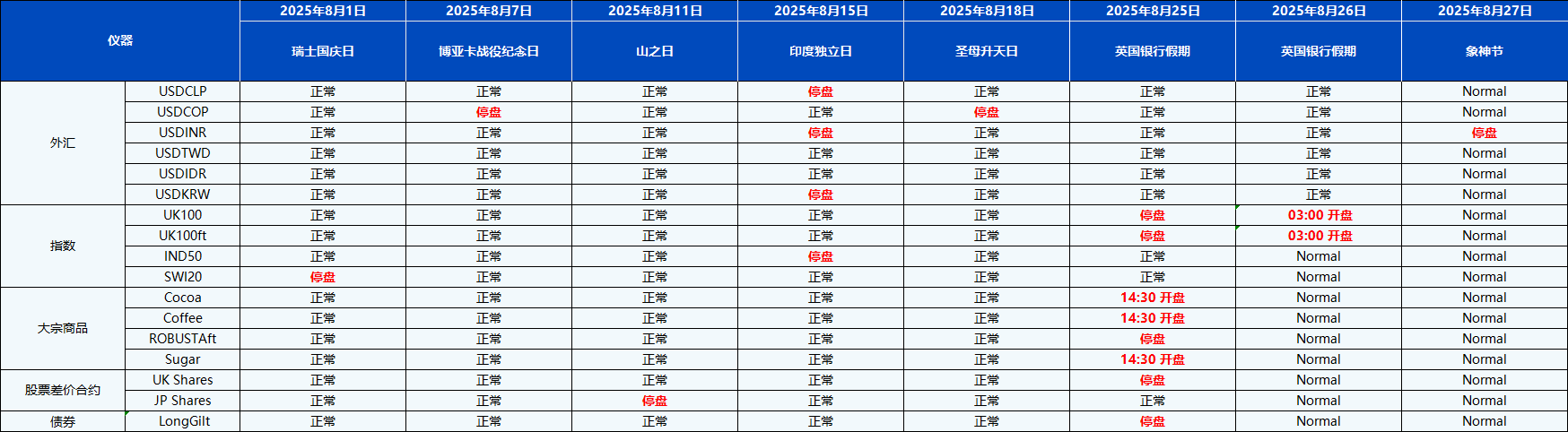 您好,受即将到来的8月份假期影响,PU Prime的交易时间将有所调整。