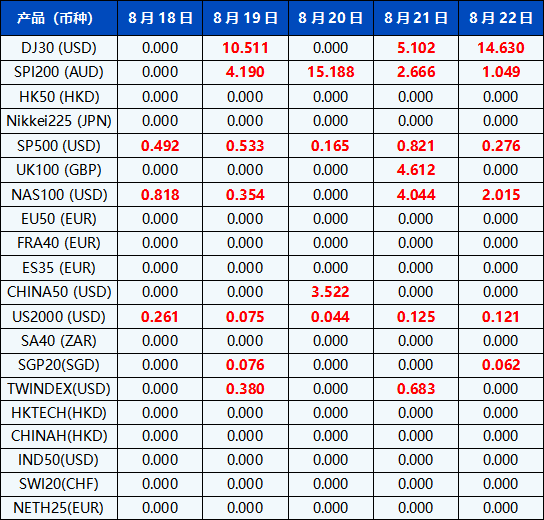 请注意, 以上数据仅供参考,所有数据均以MT4/MT5软件实际执行情况为准。