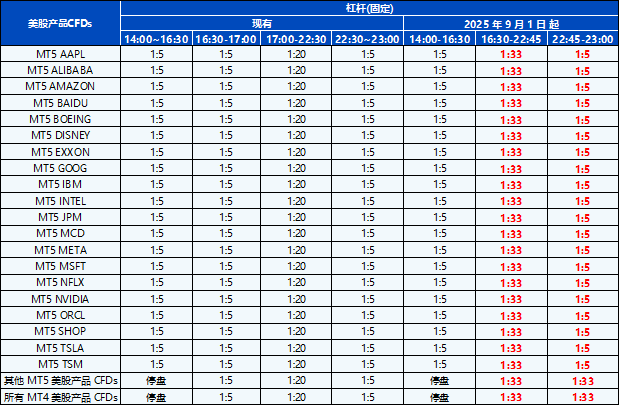 您好,为进一步提升PU Prime的竞争力和优化客户的交易体验,从2025年9月1日起,所有股票的杠杆将进行调整。