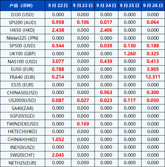 请注意, 以上数据仅供参考,所有数据均以MT4/MT5软件实际执行情况为准。