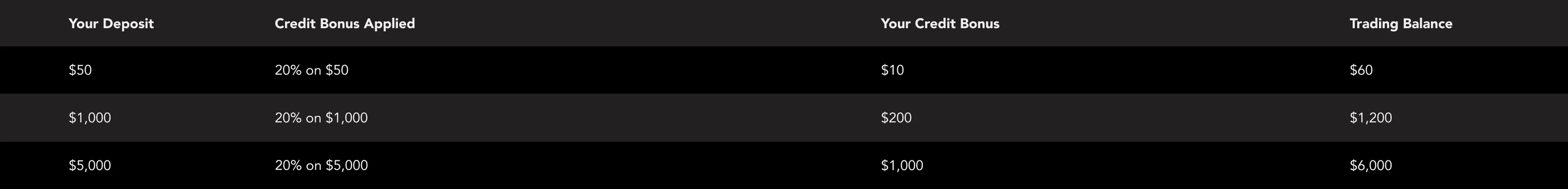 4.Eligible Clients (both new and existing clients), who meet the criteria set forth herein are able to receive credit bonuses or otherwise known as trading credit, equal to: