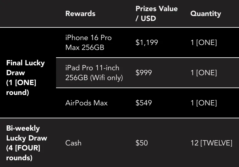 8.The final list of all rewards winners will be announced on 5 May 2025, and the rewards will be sent to clients before 31 May 2025.